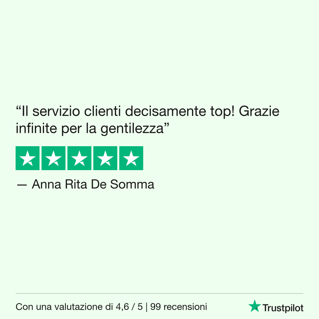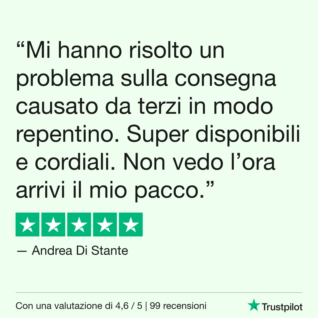 Ogni giorno mettiamo passione e dedizione in ogni ordine, e le vostre recensioni ci ricordano che stiamo andando nella direzione giusta.